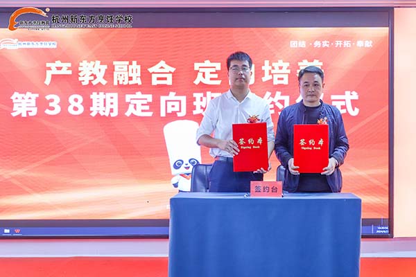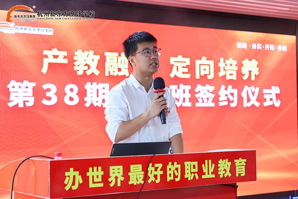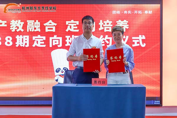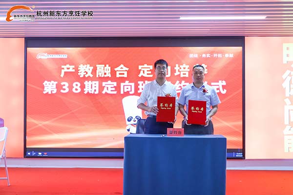 近日,杭州新東方職業(yè)學(xué)校和浙江隆聚餐飲集團(tuán)、浙江東大方餐飲管理有限公司、浙江林家一品牌管理有限公司、杭州稻樂香餐飲管理有限公司四大企業(yè)攜手,共同舉辦了“產(chǎn)教融合,定向培養(yǎng),共育英才”第38期定向班開班典禮。