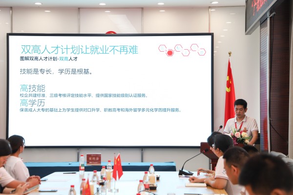 論壇伊始,校長助理邢文海對“雙高人才培養(yǎng)政策”進行了深度解讀,指出學(xué)校將聚焦雙高專業(yè)、雙高人才、雙高企業(yè)、雙高就業(yè)、雙高師資、雙高學(xué)歷通道,以培養(yǎng)“高技能、高學(xué)歷、高薪資、高穩(wěn)定以及高成長”的高中生群體為目標,助力普高、職高、中專、技校學(xué)子實現(xiàn)高質(zhì)量就業(yè),培養(yǎng)并輸送高素質(zhì)應(yīng)用型人才,讓在場的企業(yè)嘉賓對相關(guān)政策有了更清晰、更全面的認識,為校企合作明確了發(fā)力方向。