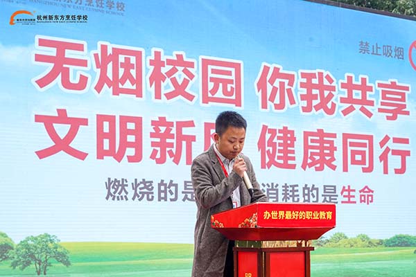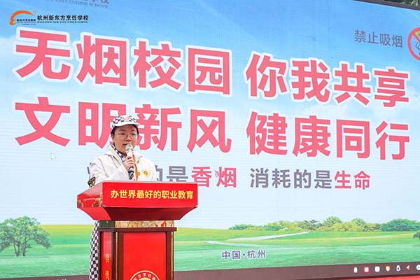 12月9日,杭州新東方烹飪學校全體師生齊聚操場,共同參與了“無煙校園,你我共享,文明新風,健康同行”禁煙啟動儀式。